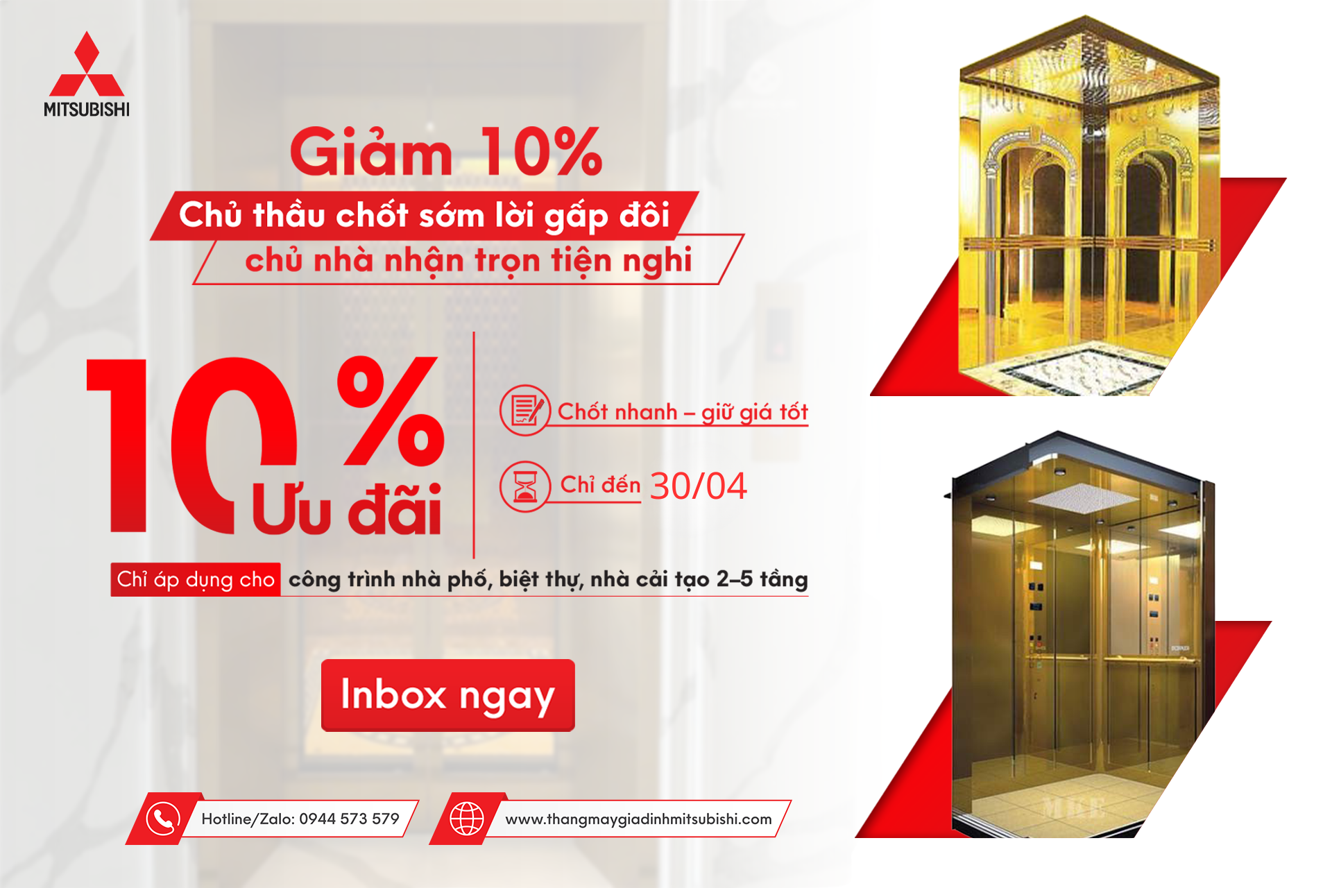 Bảng giá thang máy Mitsubishi tải trọng 250kg, 350kg, 450kg, 630kg...