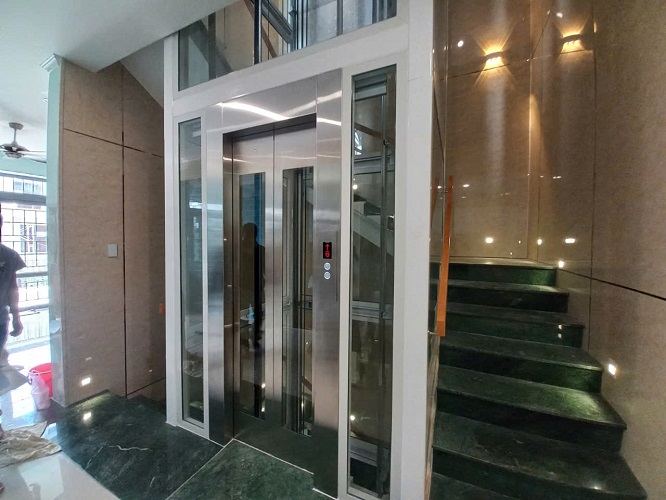 Thangmaygiadinhmitsubishi.com mang đến giải pháp thang máy gia đình hoàn chỉnh, khung hố bê tông với thiết kế được xây kín 3 mặt hông, mặt tiền được ốp đá và inox làm tăng thêm điểm nhấn cho ngôi nhà.