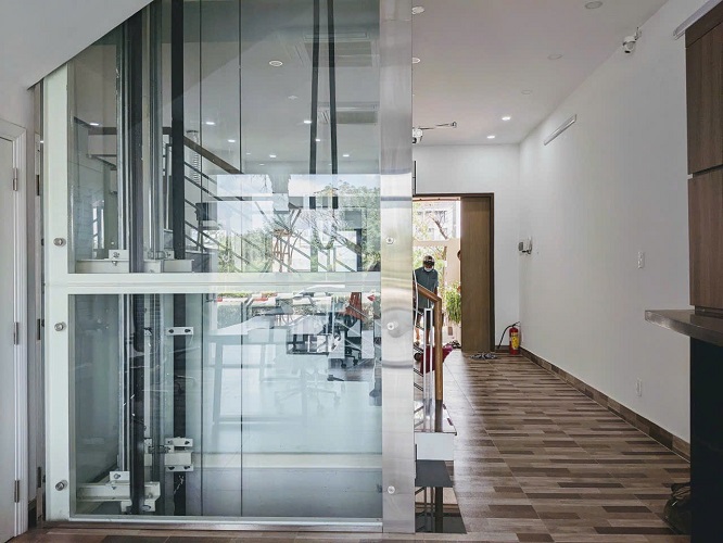 - Tiết kiệm diện tích: Phù hợp cho nhà cải tạo hoặc khi muốn thang máy vách kính quan sát trong nhà mới.